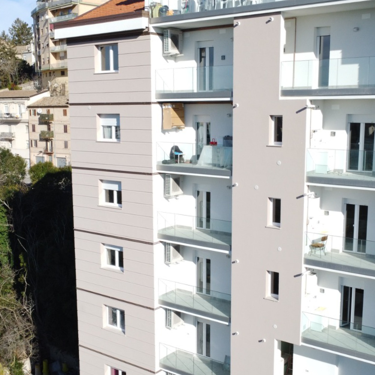 L’intervento include opere di consolidamento del terreno, realizzazione di fondazioni adeguate, e l’utilizzo di materiali e tecnologie innovative per migliorare la qualità abitativa.
